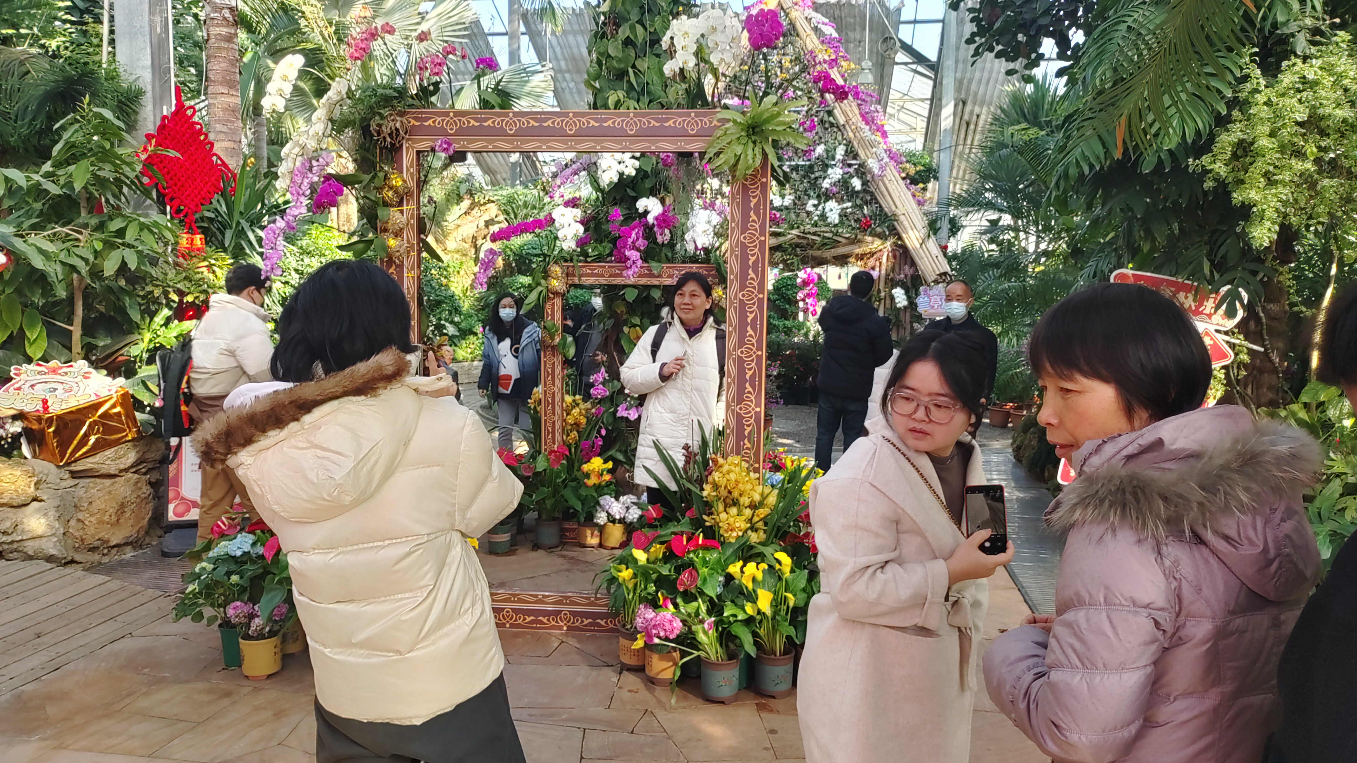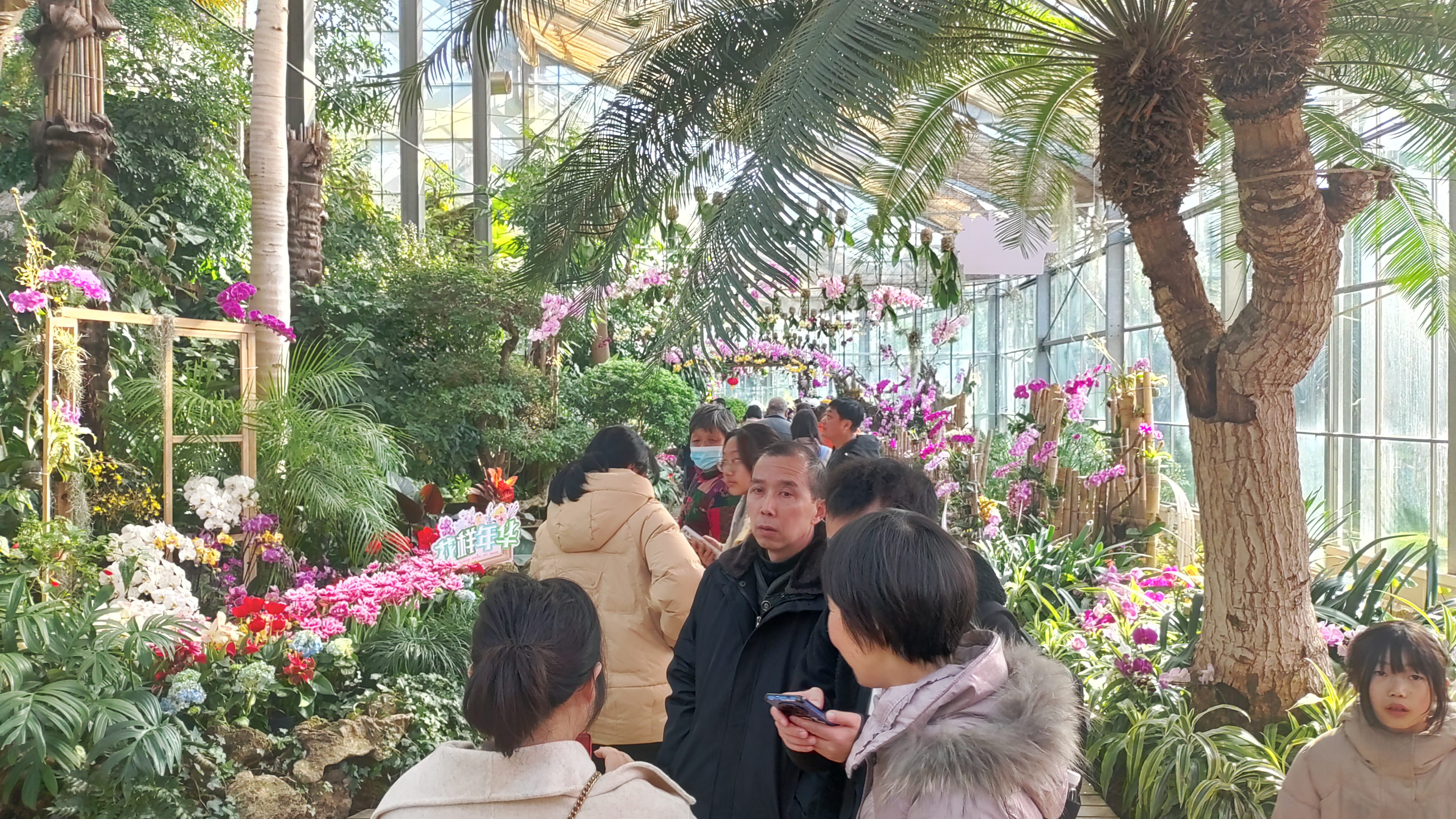 游客谢琼瑶说:“春节前就看到他们有这个兰花展,期待了很久,正好雪晴了,今天天气蛮好,就带着家人开车一起过来了,还没有进去温室展,就已经感觉到很热闹,有春节的氛围,这个花也很美,就像我们现在的心情一样,心情也很美。”
