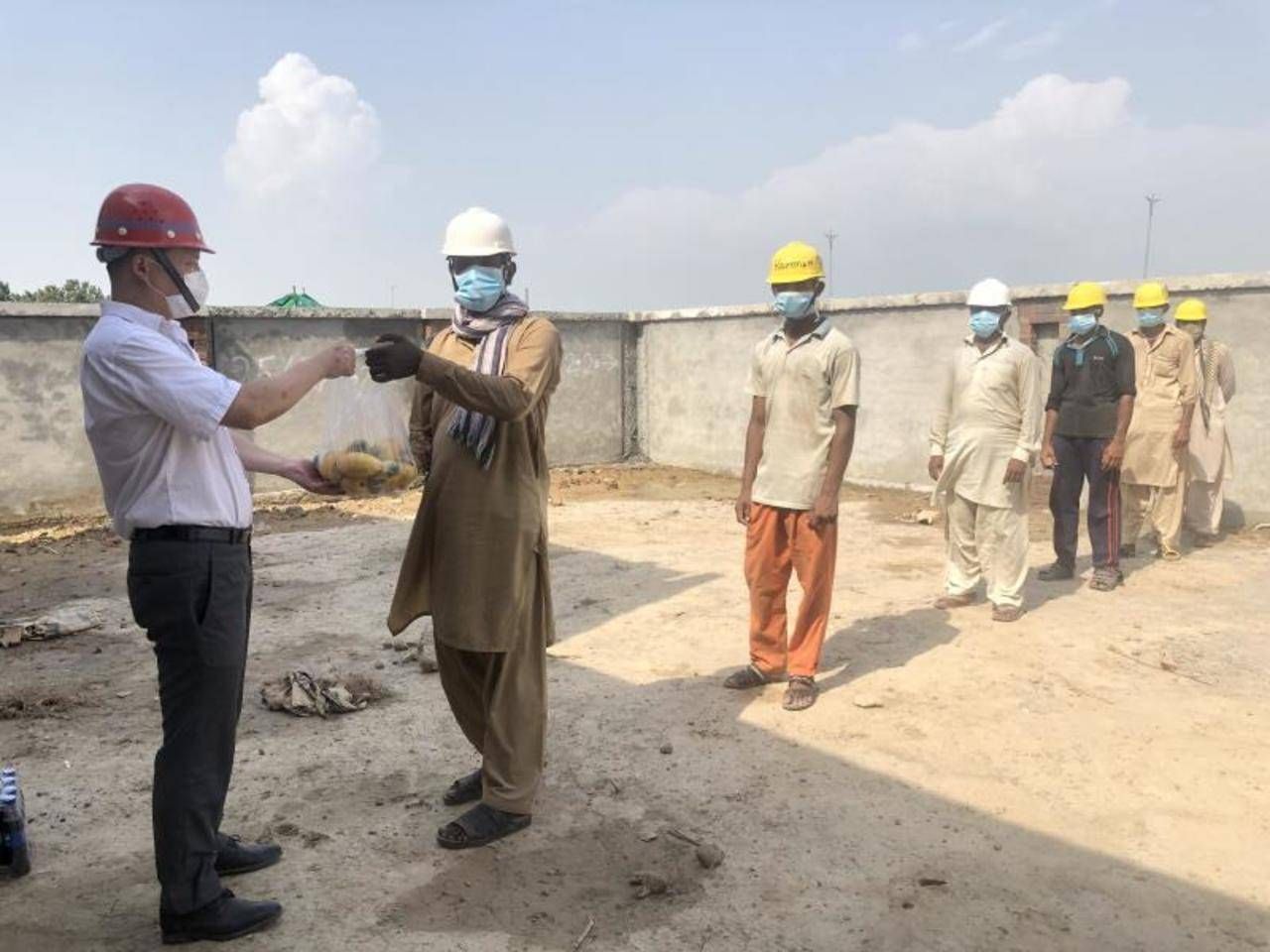 高温侵袭武汉,巴基斯坦亦是如此。巴国局部地区最高温度达50摄氏度以上。中国一冶巴基斯坦分公司DHA市政工程项目部和IT大楼项目部等开展了“夏日送清凉”活动,为奋战在施工一线的200余名中外劳务工人送去了冷饮、水果、口罩等防暑降温与防疫药品。当外籍劳工领到防暑物资后,喜笑颜开,为中国企业的善举点赞。项目部全方位为员工的生命“护航”,及时调整作息时间,延长中午休息时间,利用早晚较凉时段两班倒施工,并开展高温中暑急救和防疫知识宣传,提升全员的自救防护能力。