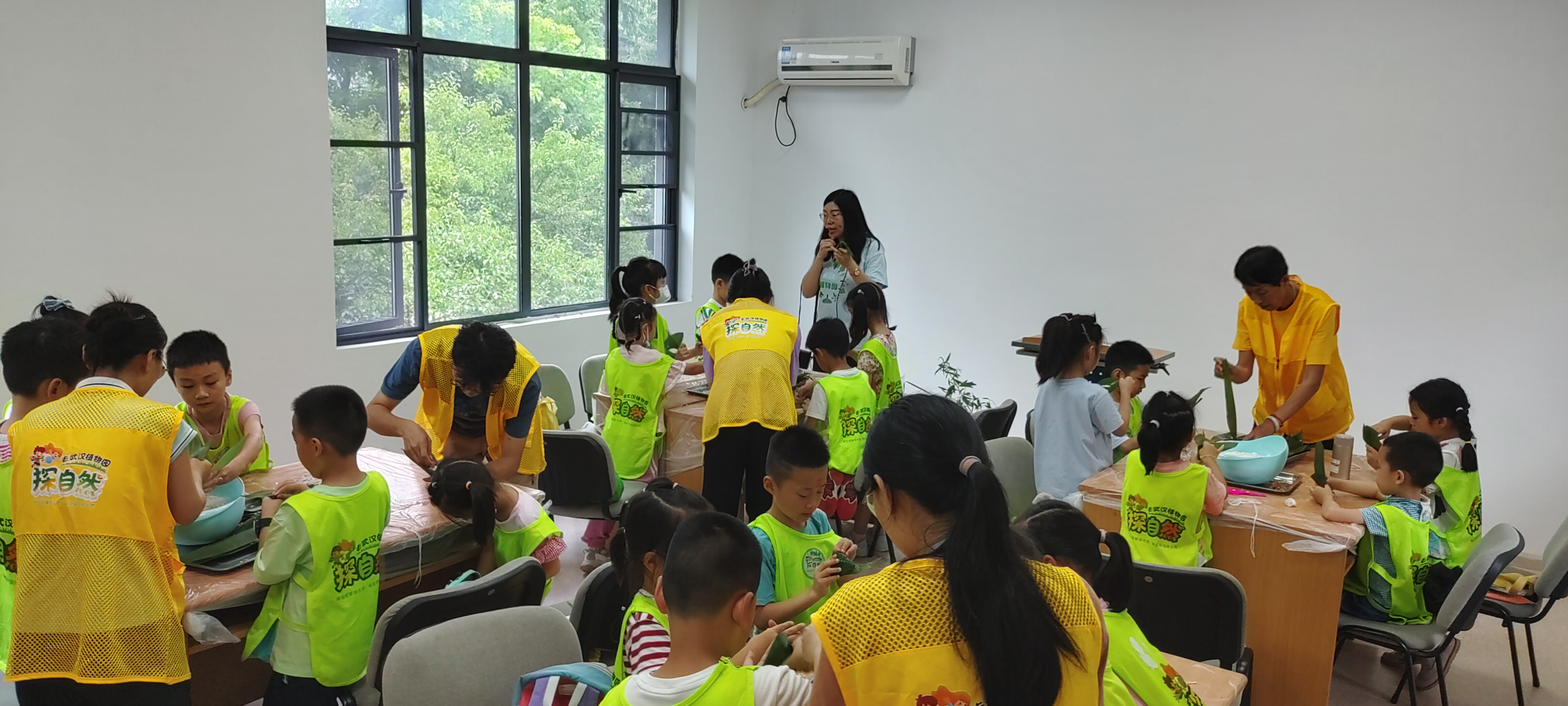 粽香端阳、曲韵流芳,武汉植物园内荷花、睡莲、千屈菜、萱草等夏花优雅绽放、尽展欢颜,勾勒出园区夏日盛景。一大早,20个亲子家庭兴致勃勃的参加了端午主题民俗课堂。孩子们怀着好奇心跟随植物老师在山水自然间寻觅各种粽叶、点雄黄、赛陆地龙舟、包粽子,感受中华文化丰富多彩 的内涵。