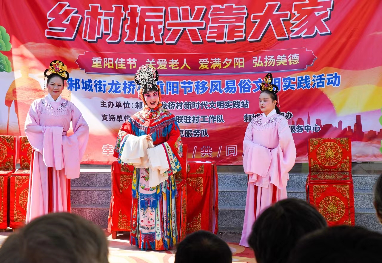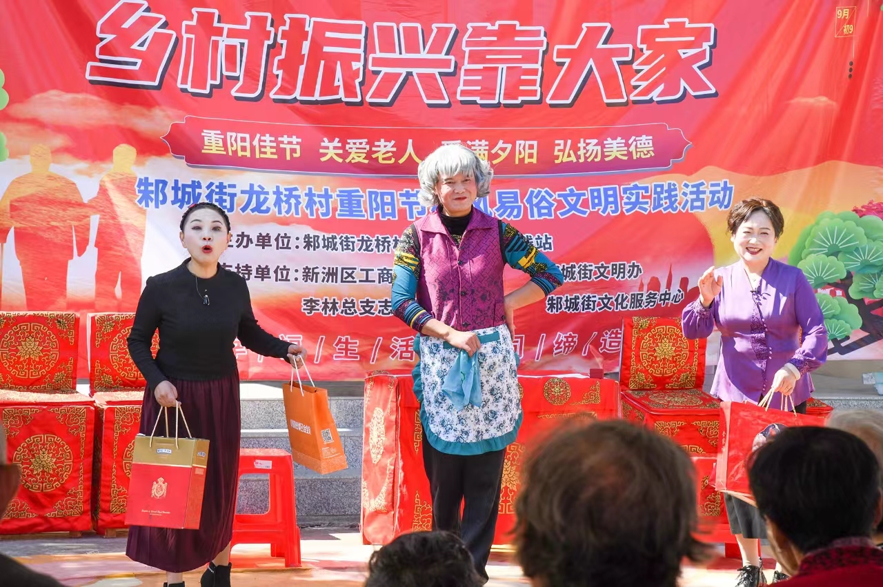 饭后,楚剧团还为老人们带来了精彩的演出,风趣幽默的湖北大鼓《剃头》、生动逗趣的小品《抢婆婆》,演员频频与老人互动,逗得老人们捧腹大笑;优美动听的歌曲《女儿情》、唱腔优美的楚剧《打金枝》让老人们陶醉,沉浸其中。