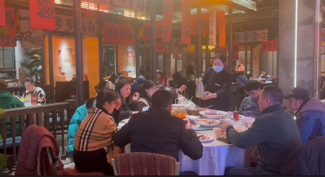 大年三十开始,武汉艳阳高照,方便回汉过年和全国、省内到武汉打卡的游客,让各大景区周边餐厅人气爆棚,黄鹤楼周边餐厅如粮道街、户部巷餐厅每天都是全天排队,黄鹤楼艳阳天中午晚上都翻台;归元寺祈福人潮涌动络绎不绝,也带动了周边餐厅乐福园、王府井、归元素菜馆生意火爆;到知音号感受沉浸式消费的游客让江边的餐厅出现翻台,东湖风景区周边农家乐餐饮达到了185%的上座率。