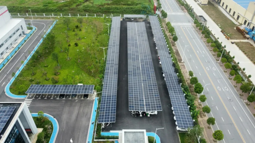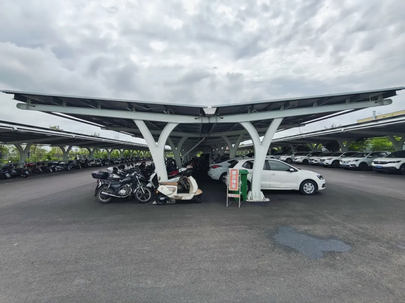 随着电动车逐步取代传统汽车,光伏车棚,作为光伏与建筑相结合中最为简便易行的方式,越来越受到青睐。项目利用原有露天停车场地,采用BIPV光伏一体化结构,以光伏组件代替传统车棚顶面,在实现发电功能的同时,还能起到遮阳挡雨作用,可覆盖363个标准停车位,不仅有效利用了空间资源,也能明显降低车棚下车内的温度,为园区生产、生活带来绿色能源和经济效益。