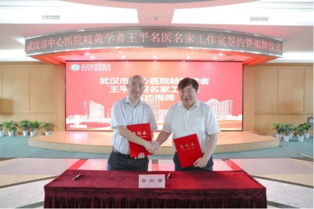 在当天上午举行的岐黄学者王平名医名家工作室揭牌仪式上,岐黄学者王平教授、武汉市中心医院院长蔡威共同签约协议书,并共同为“岐黄学者王平名医名家工作室”揭牌。