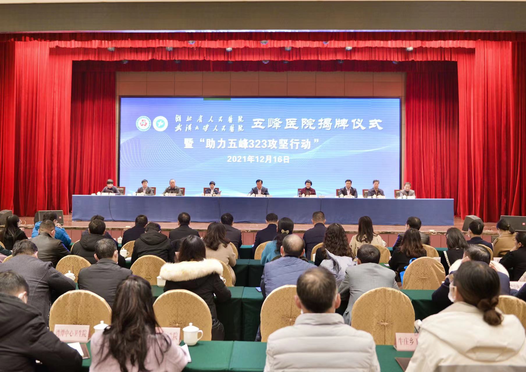 12月16日上午,湖北省人民医院(武汉大学人民医院)党委书记万红慧带领近50人专家团队对五峰县进行健康帮扶,活动现场“湖北省人民医院(武汉大学人民医院)五峰医院”正式揭牌。