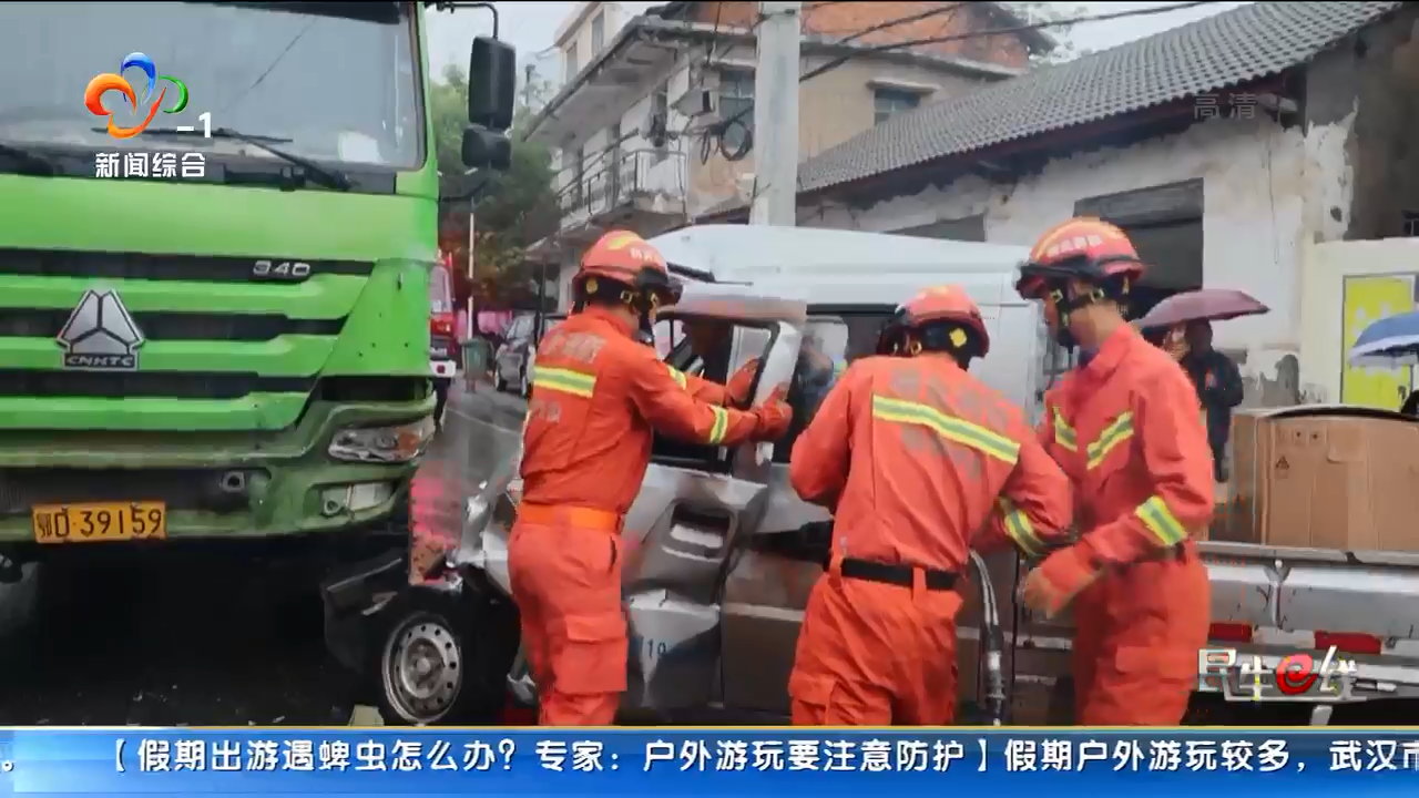 惊险!40余吨渣土车与小货车迎面相撞,消防紧急救援