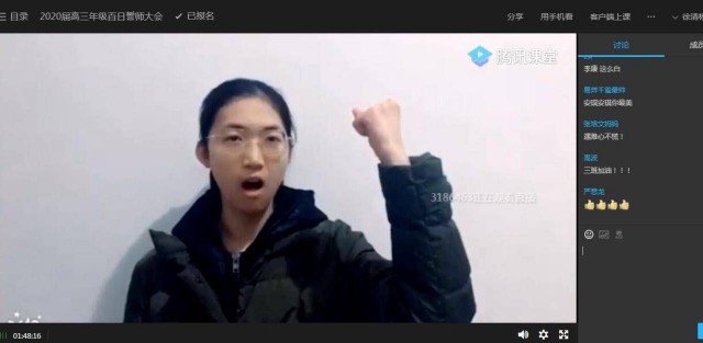 “虽然因为肺炎疫情,我们不能到校学习,但在学校的精心组织和老师们的悉心指导下,线上复习备考几乎和到校学习一样充实有效,这让我们放下焦虑,并且对100天后的高考充满信心。”高三(1)班学生杨晨光说。