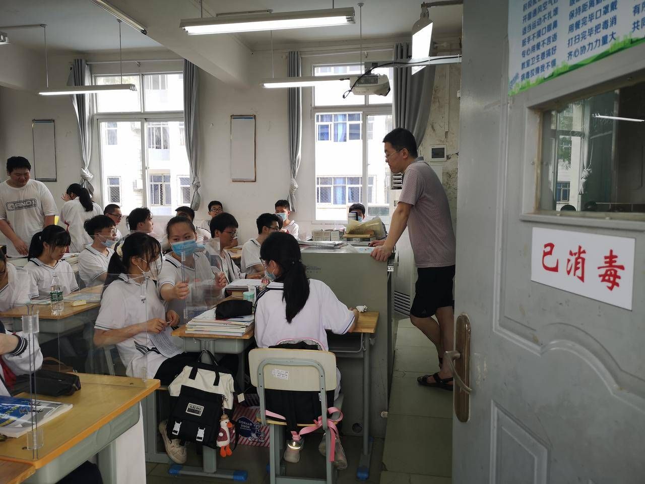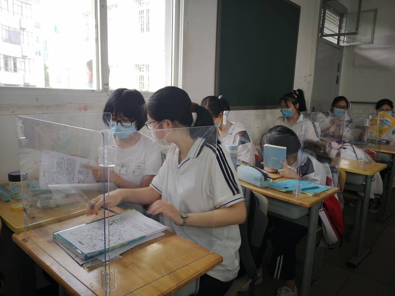 随着武汉疫情形势进一步向好,这次市68中学高一、高二复课并没有像5月8号高三复课那样将原有班级一分为二,但各项防疫工作并未有丝毫松懈。学生进入教室后会再次接受体温测量,每个课桌上放置了一块隔离挡板,午餐由食堂师傅送到教室。