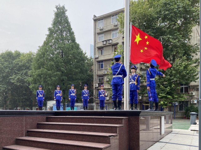 国旗班成员王程说:“第一次面对空无一人的操场升国旗,心情很复杂,想到了那么多人为抗疫而努力,让这次的疫情能够快速得到控制,让我们快速回到学校,这一切都特别不容易,也让我感受到了我们国家制度的优越性。”