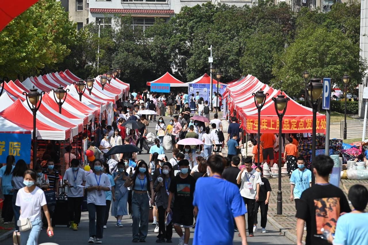 学校为迎新还特别定制了五千罐可乐,同时还配备了两辆学生物品托运车,设置了家长休息区、医疗安置点以及对贫困学生开放的绿色通道,报到过程中每个流程都有志愿者指引和帮助。