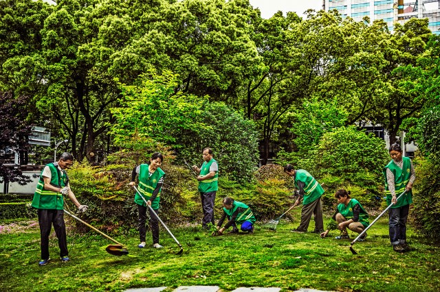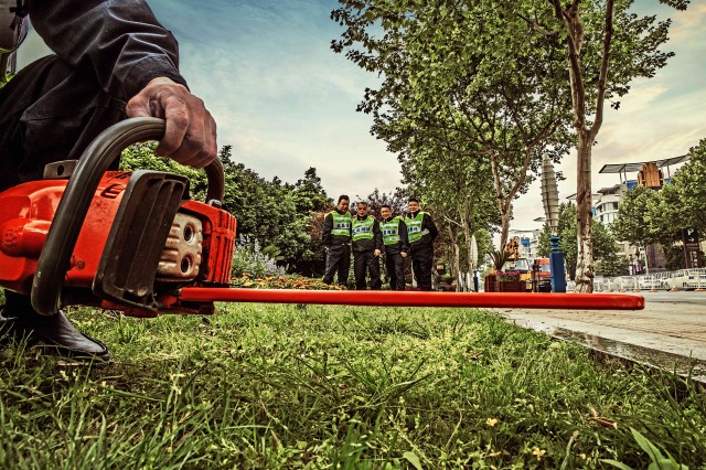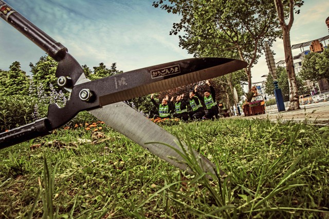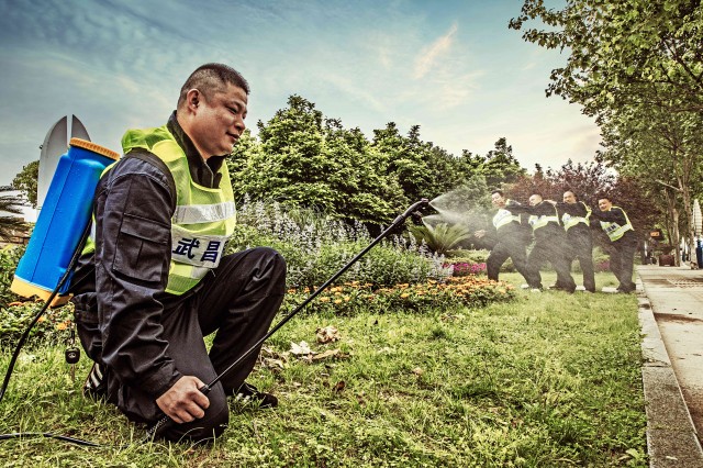 据悉,拍摄期间,余老师召集了该摄影化妆学校的化妆师、学生共十余人参加,为“园丁城管”化妆、摆poss。“园丁城管”说,拍这样的街拍、在自己平时工作的地方摆出各种萌态poss还是第一次。照片效果出来后,尤其是看到“错位拍摄”的照片里,一群“园丁城管”好像树木的“害虫”、“杂草”被“喷洒”、“剪除”的情景,大家还在回味拍摄时的热闹场面。