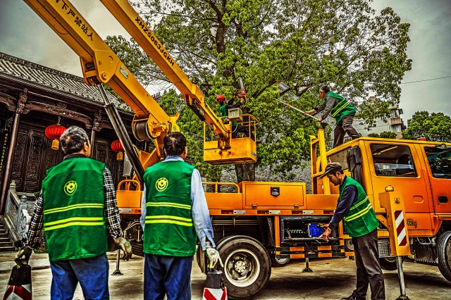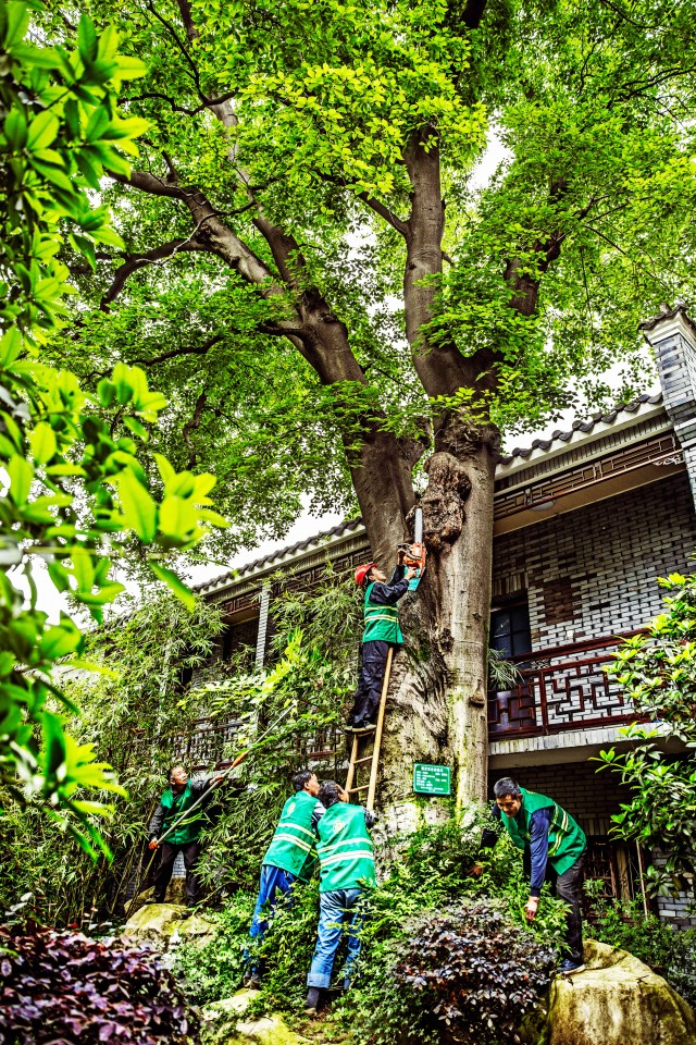 “园丁城管”草坪、树木、古树养护场景街拍。