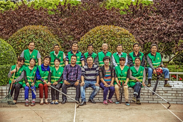 今年,余老师萌生了为这群“园丁城管”拍摄时尚大片的念头,所干就干,余老师召集了学校的化妆师、学生为“园丁城管”化妆,自己则为这群“园丁城管”亲自街拍。
