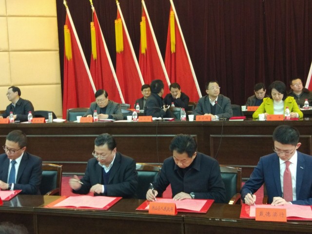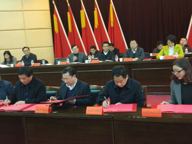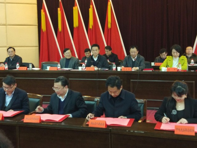 区领导与相关单位——区商务和旅游局、和平街、青菱街/工业园签署招商引资工作责任状