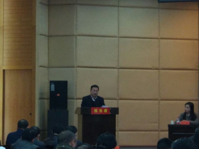 洪山区招商引资推进大会开始,杨海松副区长总结2016年招商引资工作,布置2017年招商引资工作。